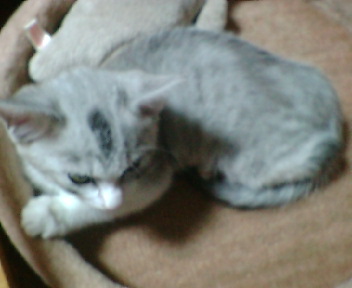 あと、こいつは雑種なのだが、どうもアメショの血が混じっとるらしい。